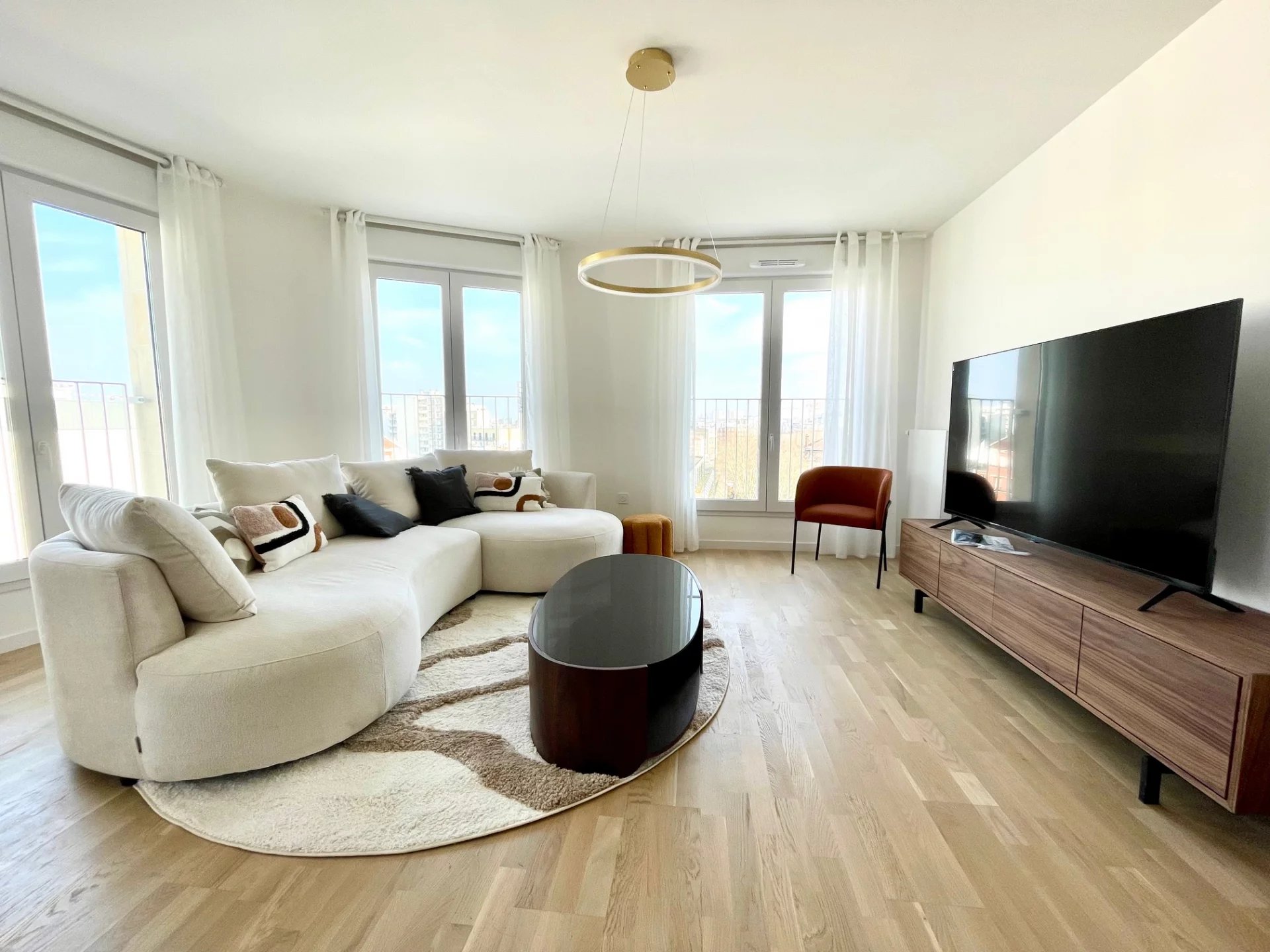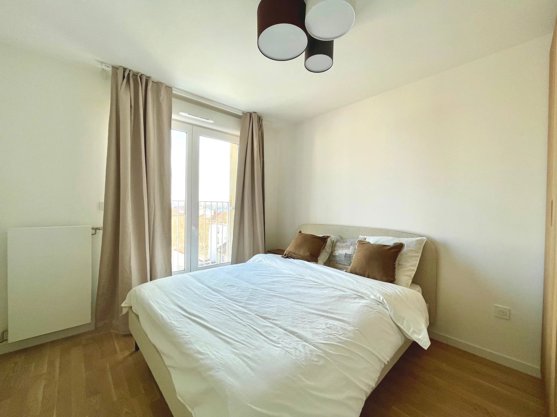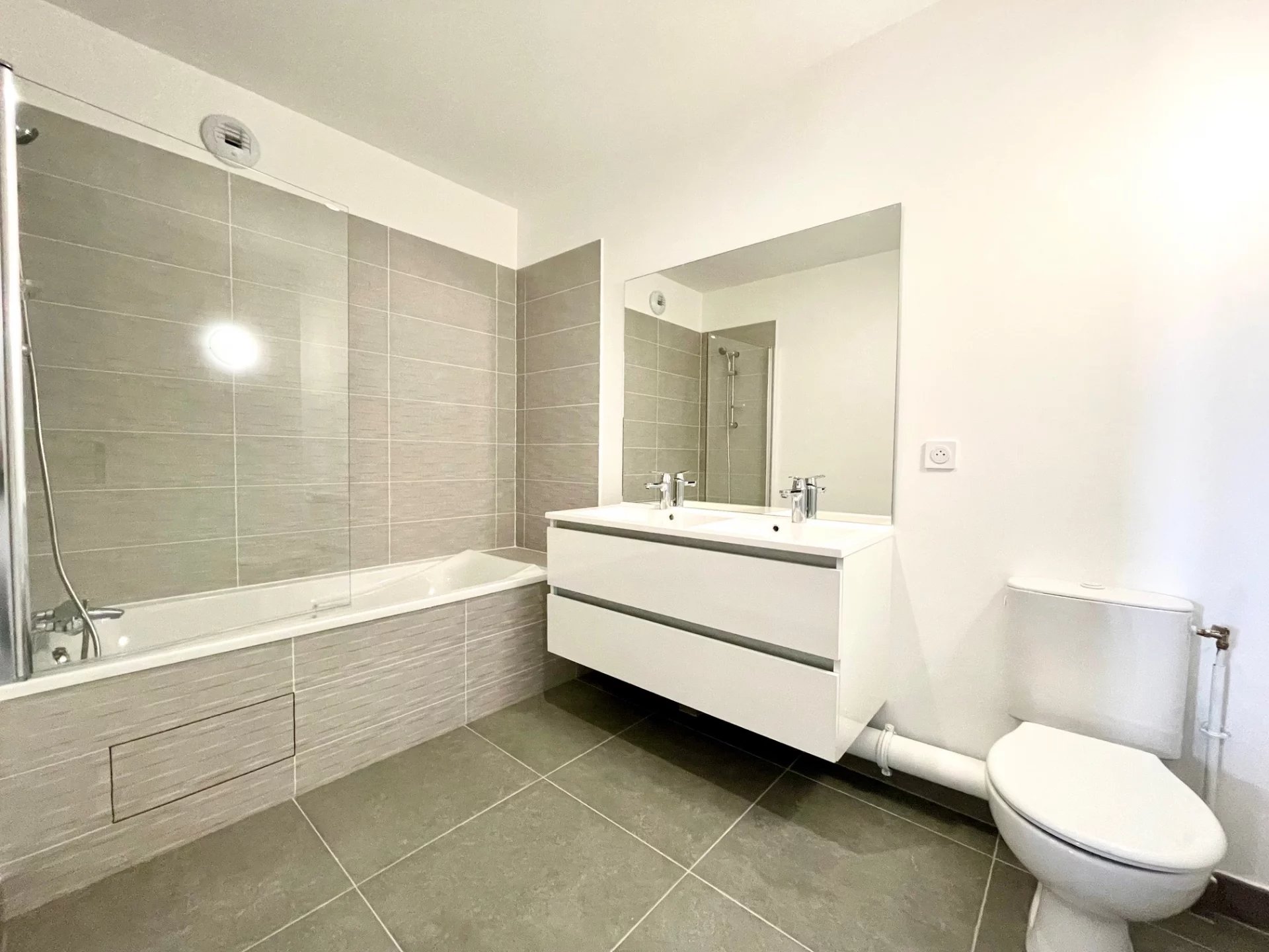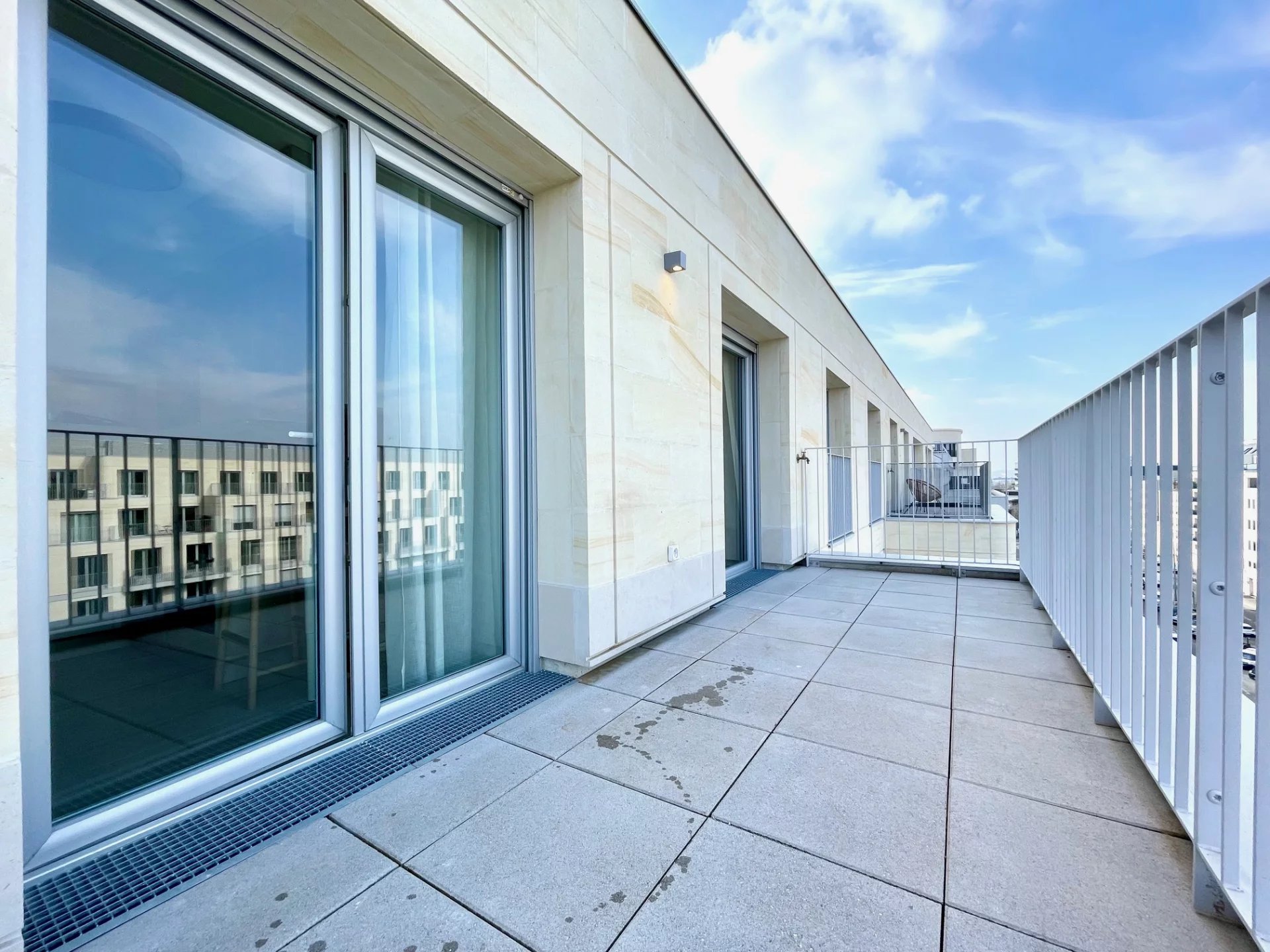 Au dernier étage d'un immeuble neuf, un superbe appartement moderne composé d'un grand salon, de 3 chambres, d'une cuisine entièrement équipée, d'une lingerie, 2 salles de bains et 2 cabinet de toilette. Appartement très calme avec une grande luminosité. En sus du loyer, un parking en face de l'immeuble, 100€.