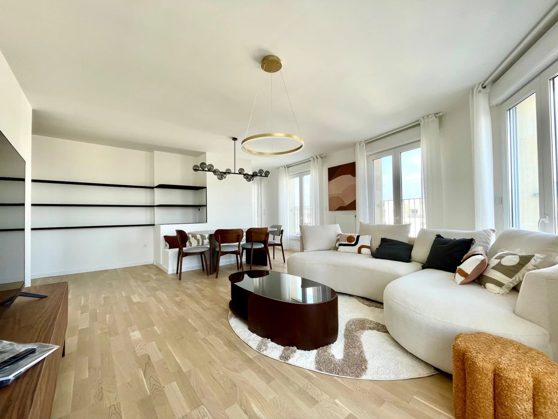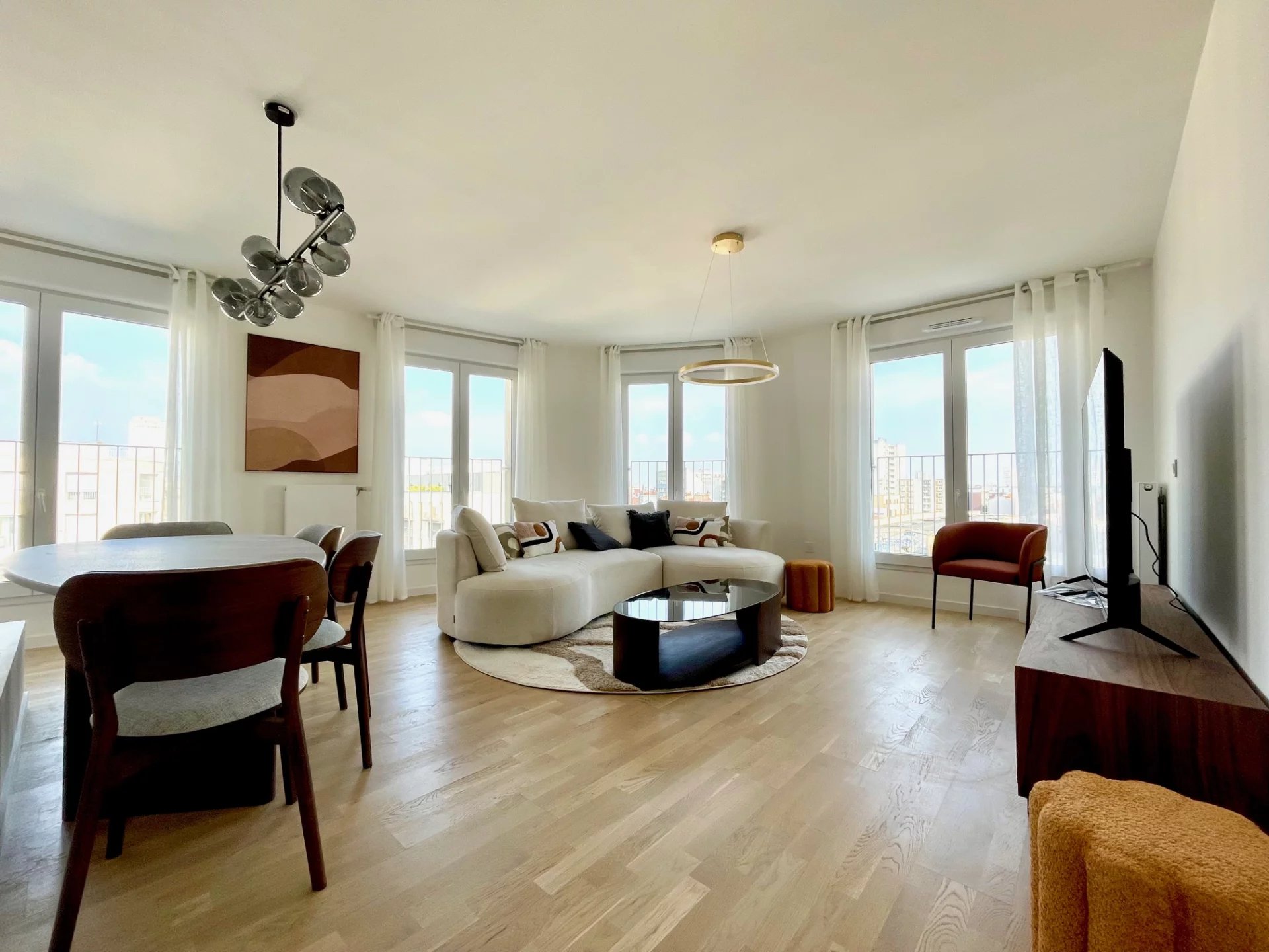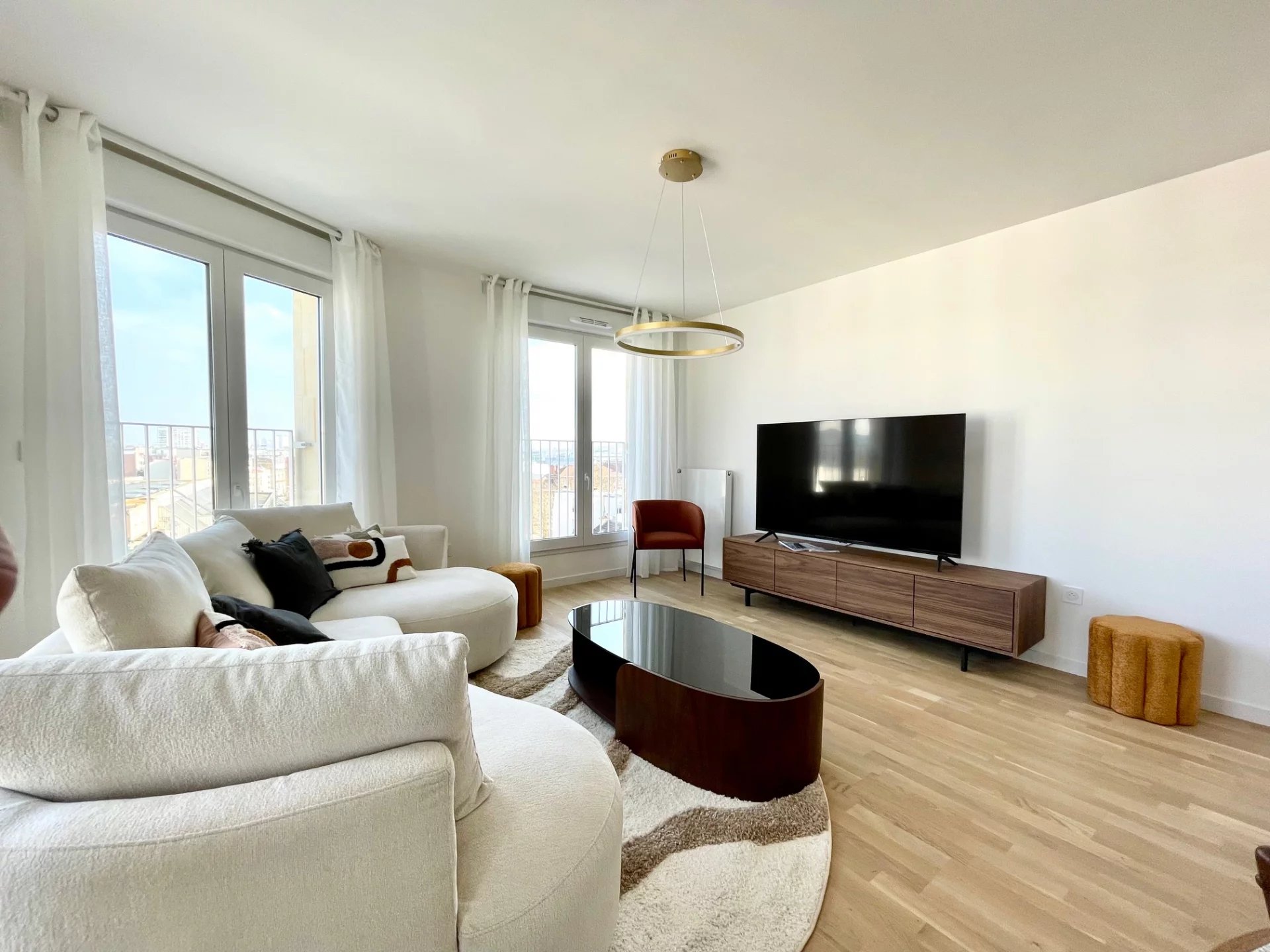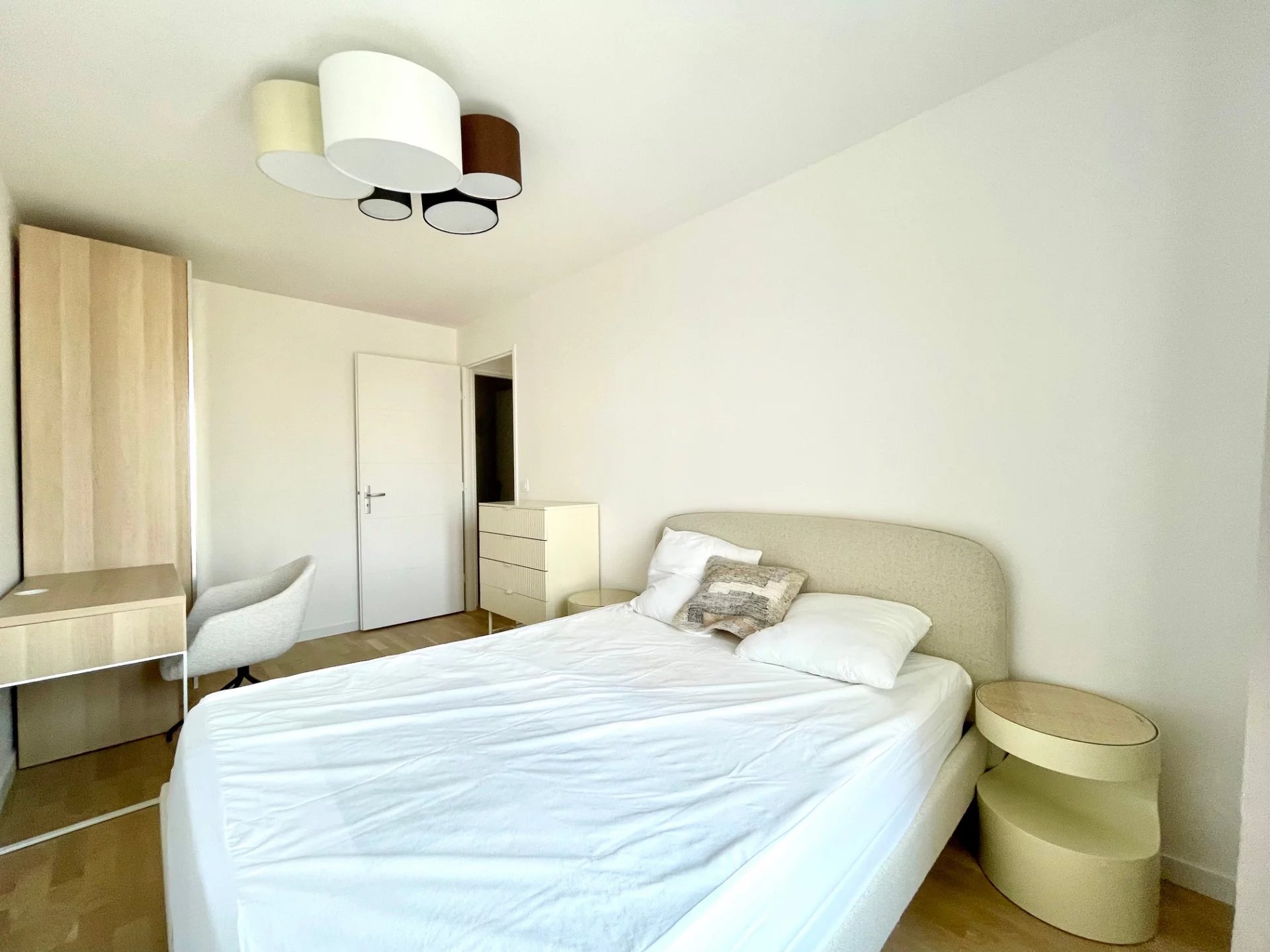 Au dernier étage d'un immeuble neuf, un superbe appartement moderne composé d'un grand salon, de 3 chambres, d'une cuisine entièrement équipée, d'une lingerie, 2 salles de bains et 2 cabinet de toilette. Appartement très calme avec une grande luminosité. En sus du loyer, un parking en face de l'immeuble, 100€.