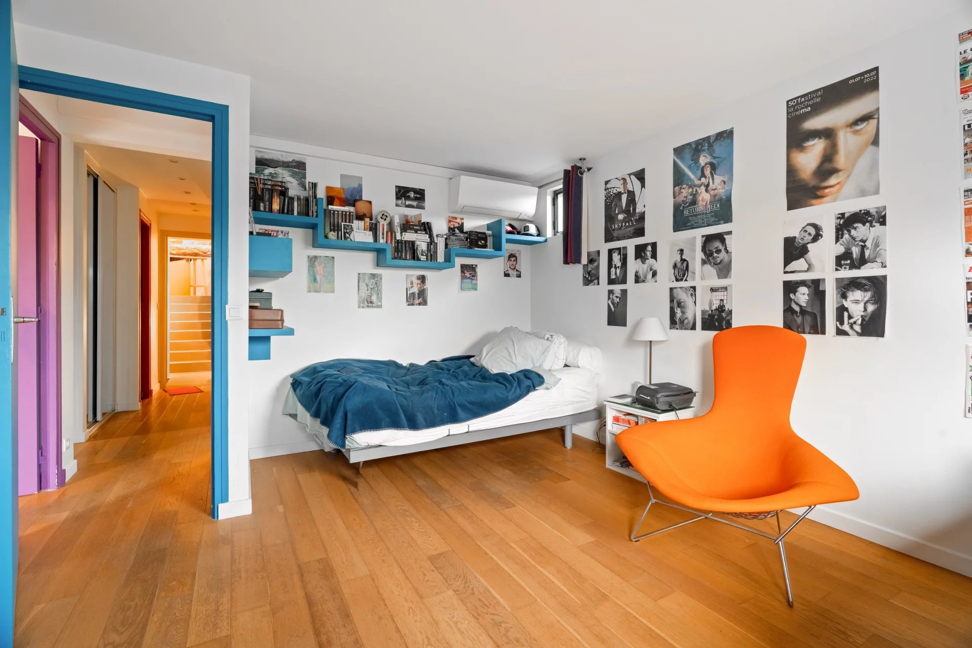 Le premier étage accueille quatre chambres lumineuses ainsi qu’une grande salle de bains. Le dernier niveau est entièrement dédié à une superbe suite parentale de 39 m² avec terrasse panoramique, dressing et salle d’eau privative, offrant un espace intime et préservé.